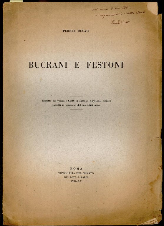 Opuscolo vintage. Estratto dal volume: Scritti in onore di Bartolomeo Nogara raccolti in occasione del suo LXX anno. Dedica autografa dell’autore. Illustrazioni in bn fuori dal testo. Copertina con strappetti e parti mancant. Usura da scaffale. Segno del tempo.