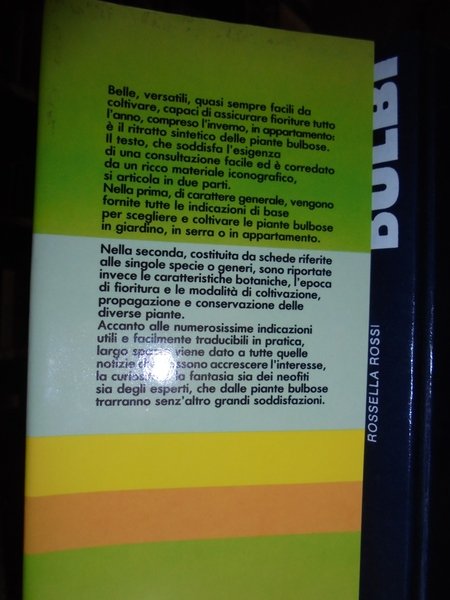 Rossella, Rossi. Milano, Mondadori, 1989. BULBI. Utilizzazione - Esposizione - Stagione di fioritura. In-16°, pelle edit. con sovracopertina. 255 pp. con numerose illustrazioni tutte a colori nel testo. Come nuovo. Neg. nat. mob. 0