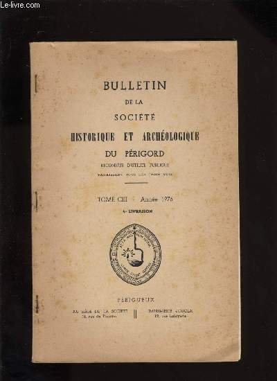 Bulletin de la société Historique et Archéologique du Périgord. Tome CIII - Livraison n° 4