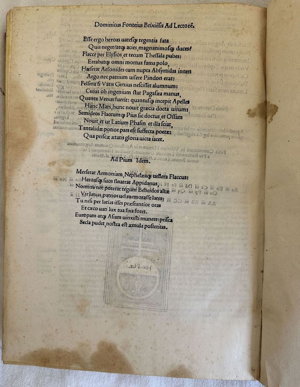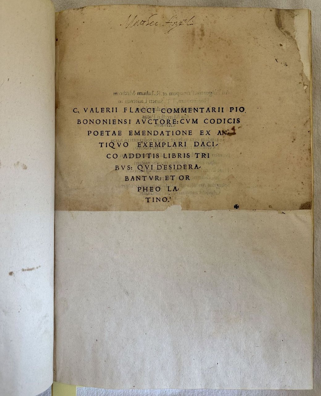 C. VALERII FLACCI COMMENTARII PIO BONONIENSI AUCTORE: CUM CODICIS POETAE EMENDATIONS EX ANTIQUO EXEMPLARI DACICO ADDITIS LIBRIS TRIBUS: QUI DEDIDERABANTUR: ET ORPHEO LATINO