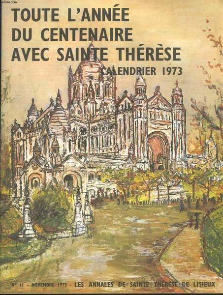 CALENDRIER 1973. TOUTE L'ANNEE DU CENTENAIRE AVEC SAINTE-THERESE. LES ANNALES DE SAINTE THERESE DE LISIEUX N°11, NOVEMBRE 1972.