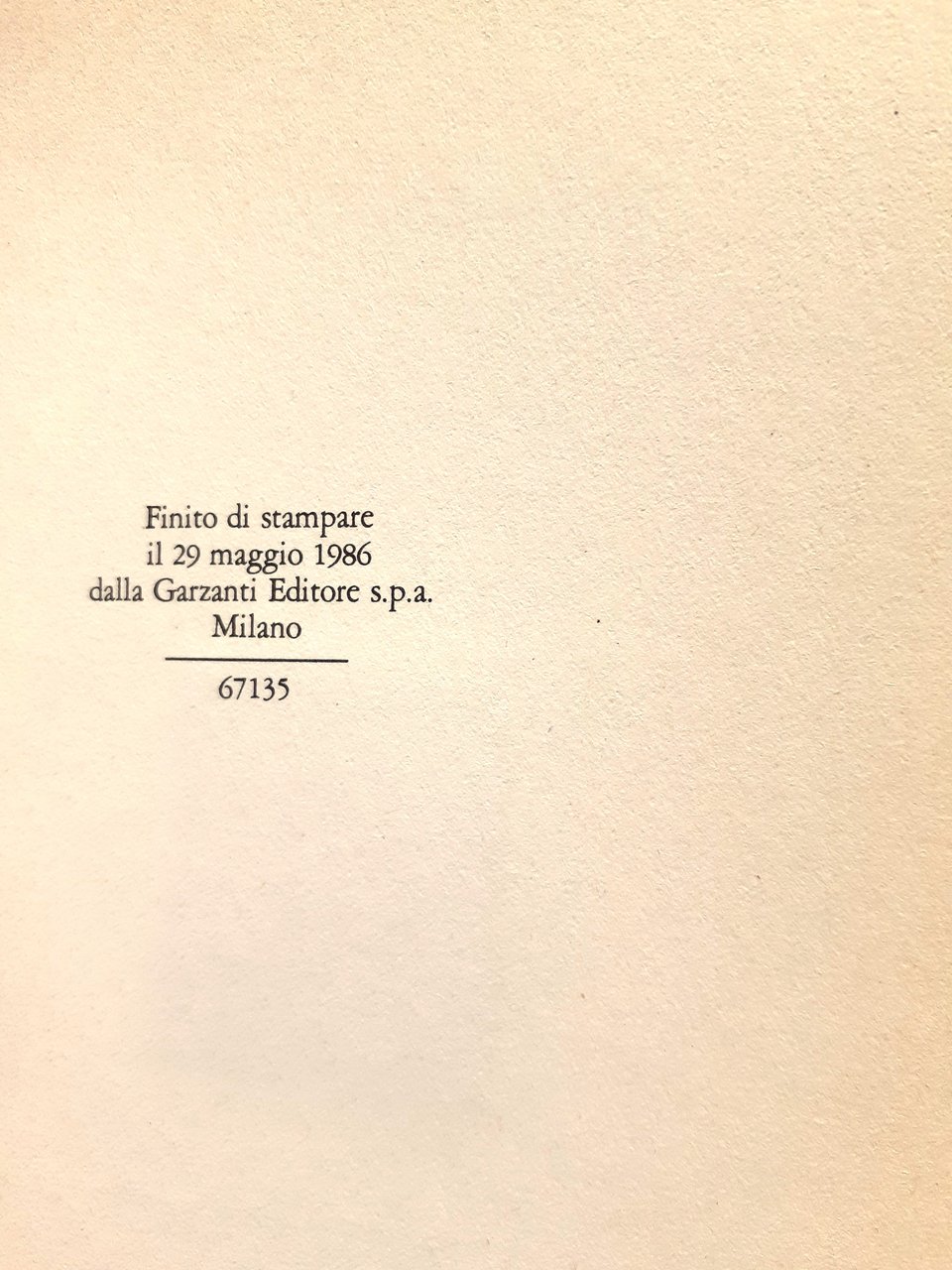 - Milano, Garzanti Editore 29 maggio 1986