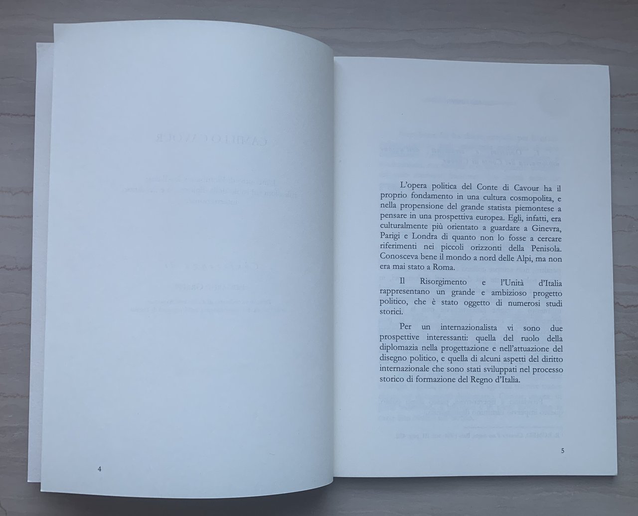 I ed.. Atti della Conferenza tenutasi a Santena (prov. Torino) in data imprecisata ma verosimilmente il 25 settembre 2007 presso la Sala Diplomatica del Castello Cavour nell'ambito del Premio Camillo Cavour Edizione 2007 (1a edizione del premio stesso), attribuito a Carlo Azeglio Ciampi. VIII/48/brossura in cartoncino ruvido avorio con titoli in nero e ritratto del Cavour in color pesca al primo piatto. Stato molto buono.