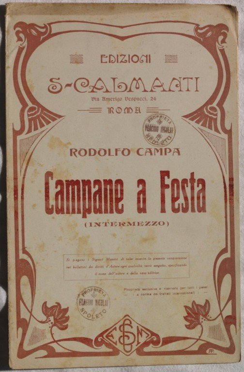 In 8. cm 27x17,5. pp. 7. partitura completa per orchestra del 1930 di una canzone. Caratteristica copertina decorata dell'epoca. Ex libris sulla copertina. Buone condizioni, fioriture. a complete score for orchestra of 1930. Ex libris in the cover. Good conditions, foxings.<BR>Carachteristic decorated cover of that period.