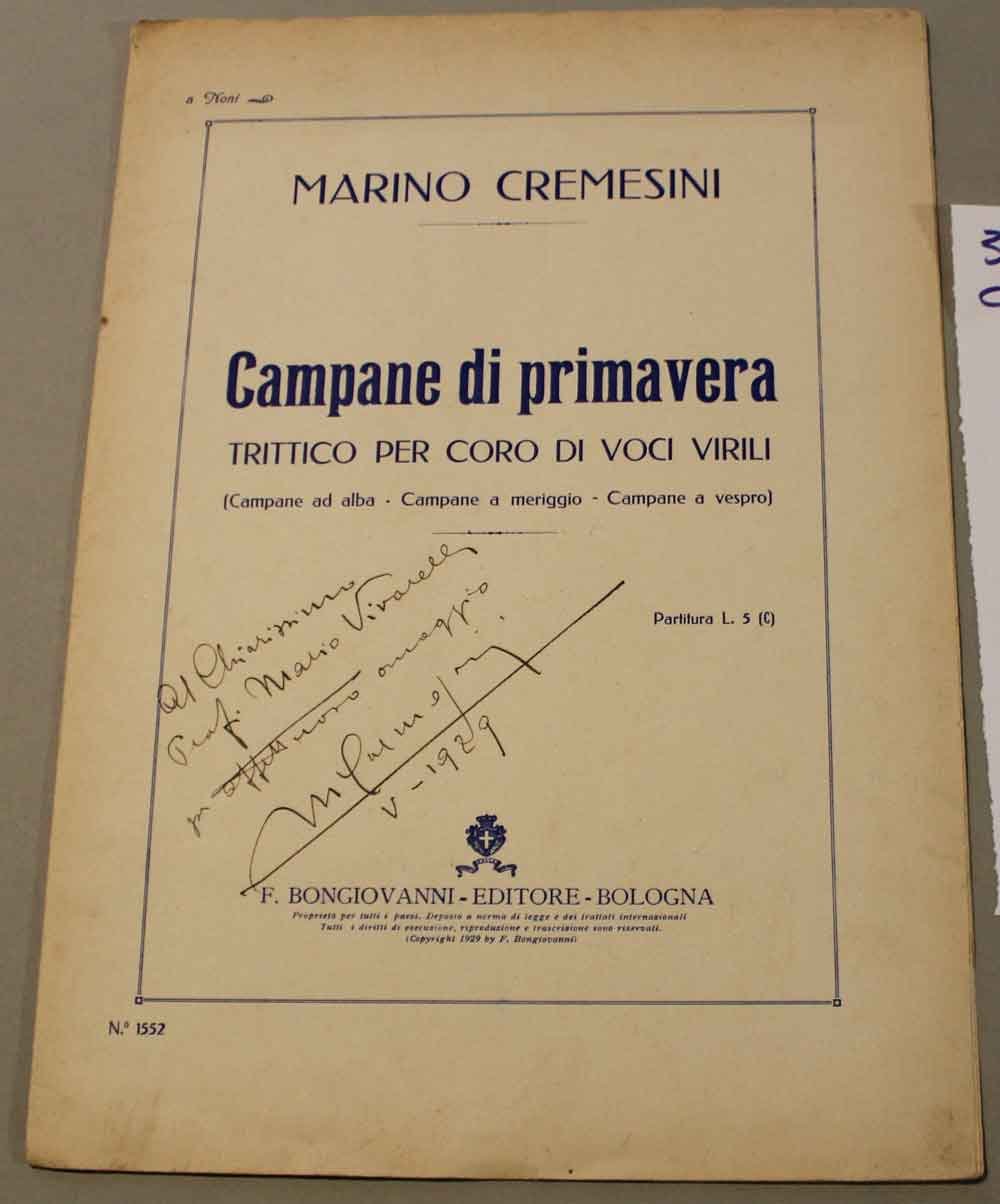35 cm, brossura originale, titolo al piatto, p. 8, dedica autografa e firmata dal compositore