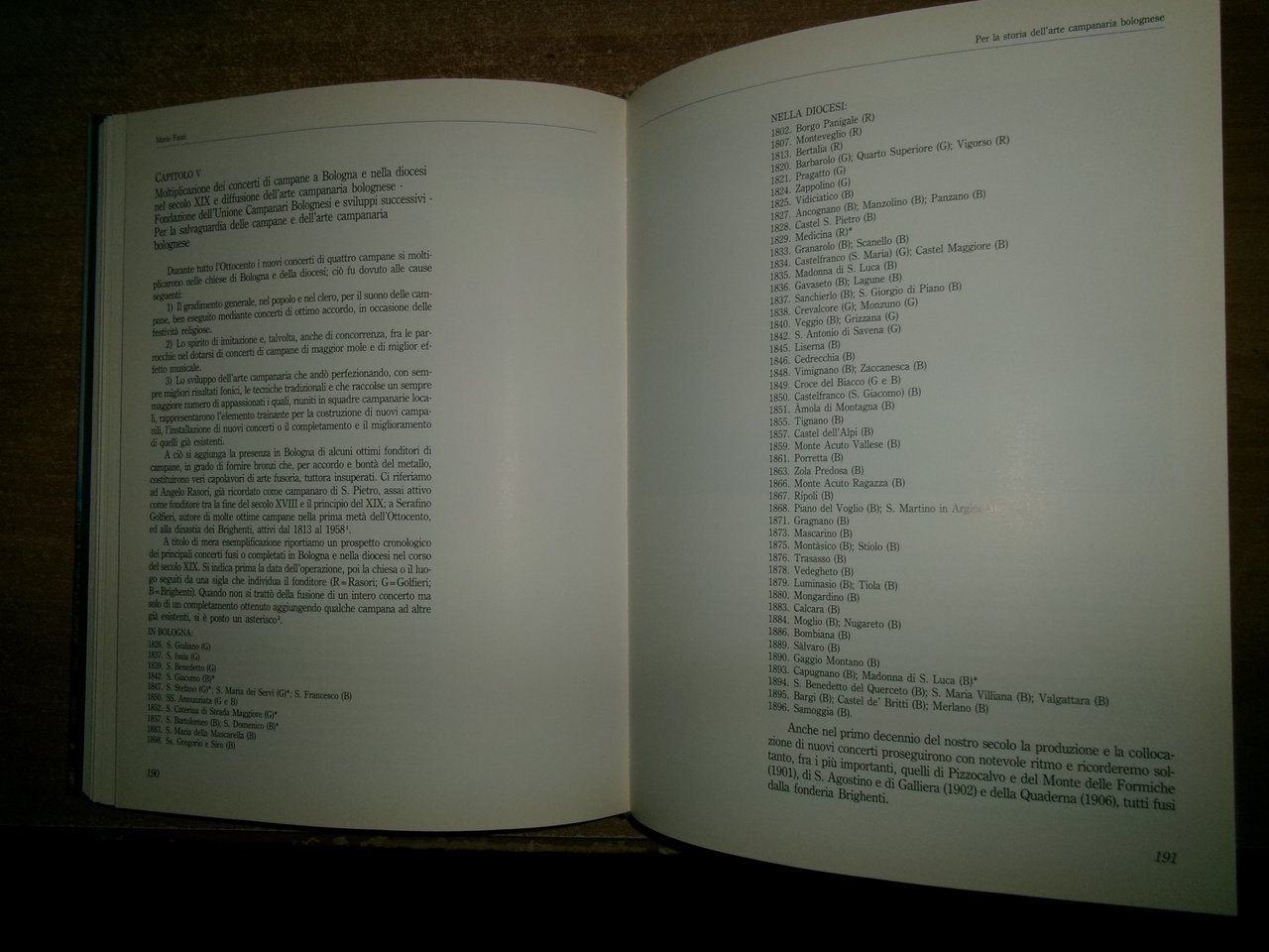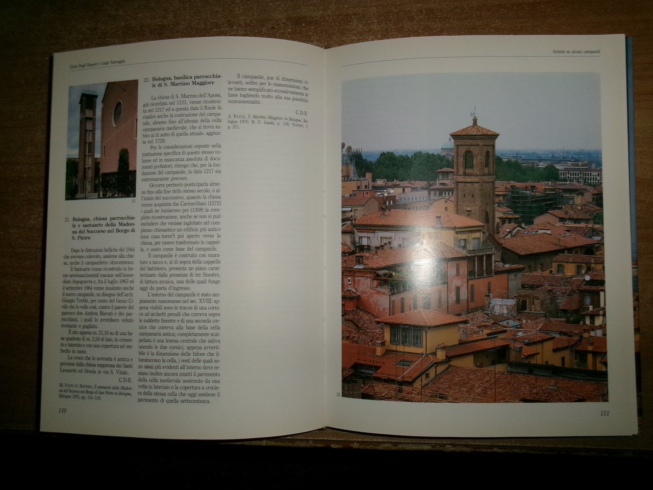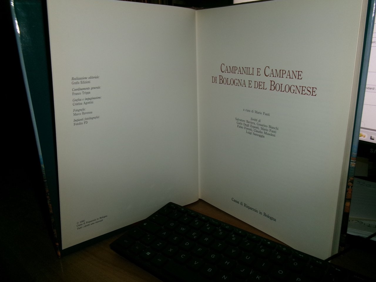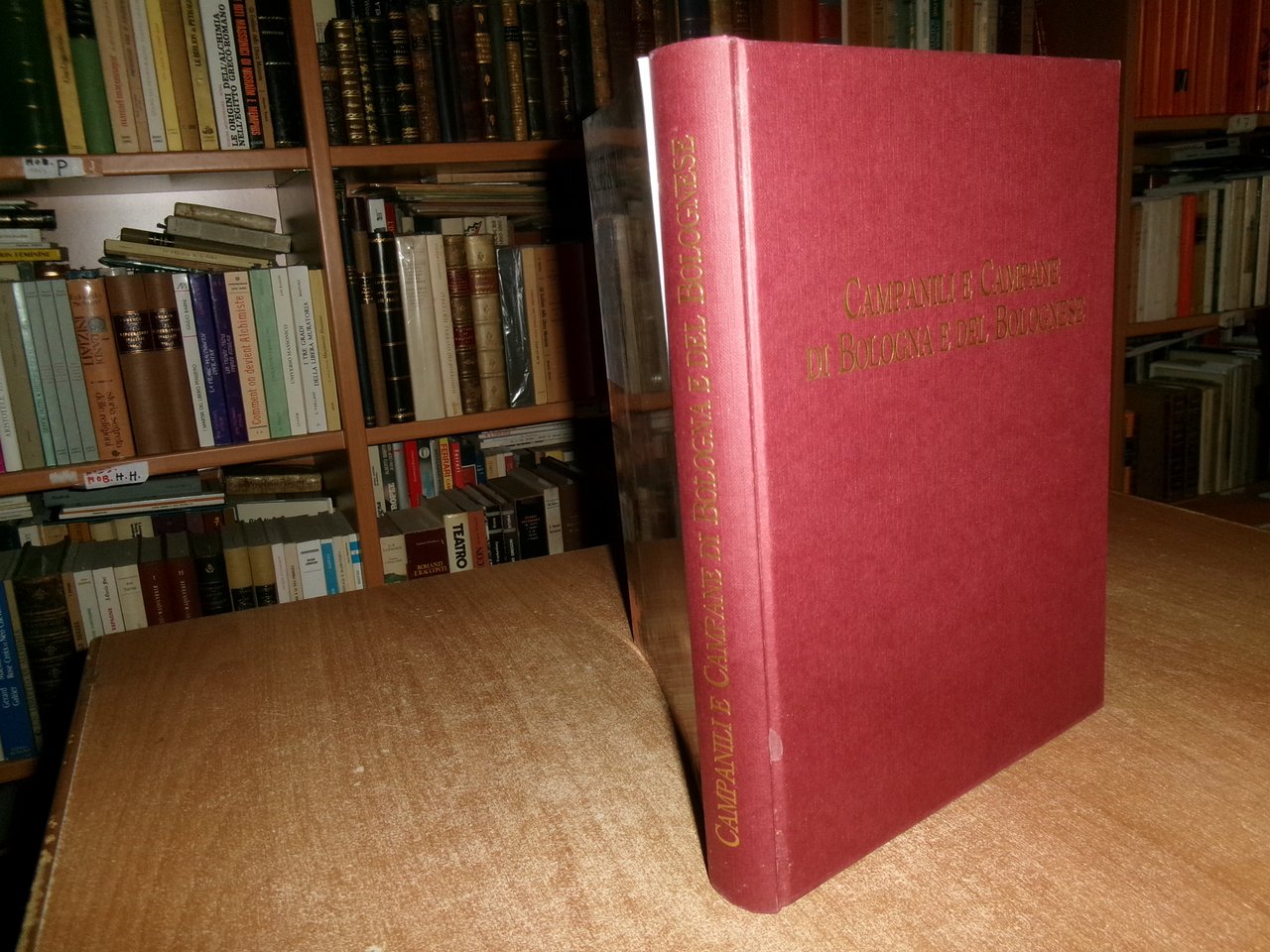 AA. VV. a cura di MARIO FANTI. Bologna, Grafis, 1982. CAMPANILI e CAMPANE di Bologna e del Bolognese. In-8° grande, tela edit. bordeaux con titoli in oro e sovracopertina ill. a col. 274 pp. con numerose illustrazioni a colori n.t. Tiratura di 6000 copie. Ottimo stato. Neg. Bol. mob. S