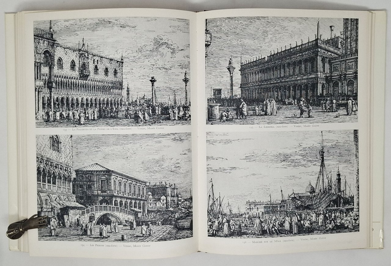 Collana: les plus grands artistes italiens. Aldo Martelli Editore - edition Francaise exclusivité Weber. Pagine: 70 + [ 216 ] di illustrazioni in nero. Formato: 23 x 31,5 cm circa. Stato di conservazione: si segnalano tre strappetti sui margini della sovraccoperta posteriore ma, nel complesso, un esemplare decisamente buono, privo di firme d'appartenenza, timbri, sottolineature, annotazioni o altri segni nel testo. Copertina cartonata rigida con sovraccoperta illustrata a colori in finitura lucida. Belle illustrazioni a colori applicate sulle pagine (nella prima parte, numerata). Con 278 tavole in nero per lo più a piena pagina (che costituiscono la seconda parte dell'opera). Esaustiva monografia sul pittore Giovanni Antonio Canal (meglio conosciuto come Canaletto).