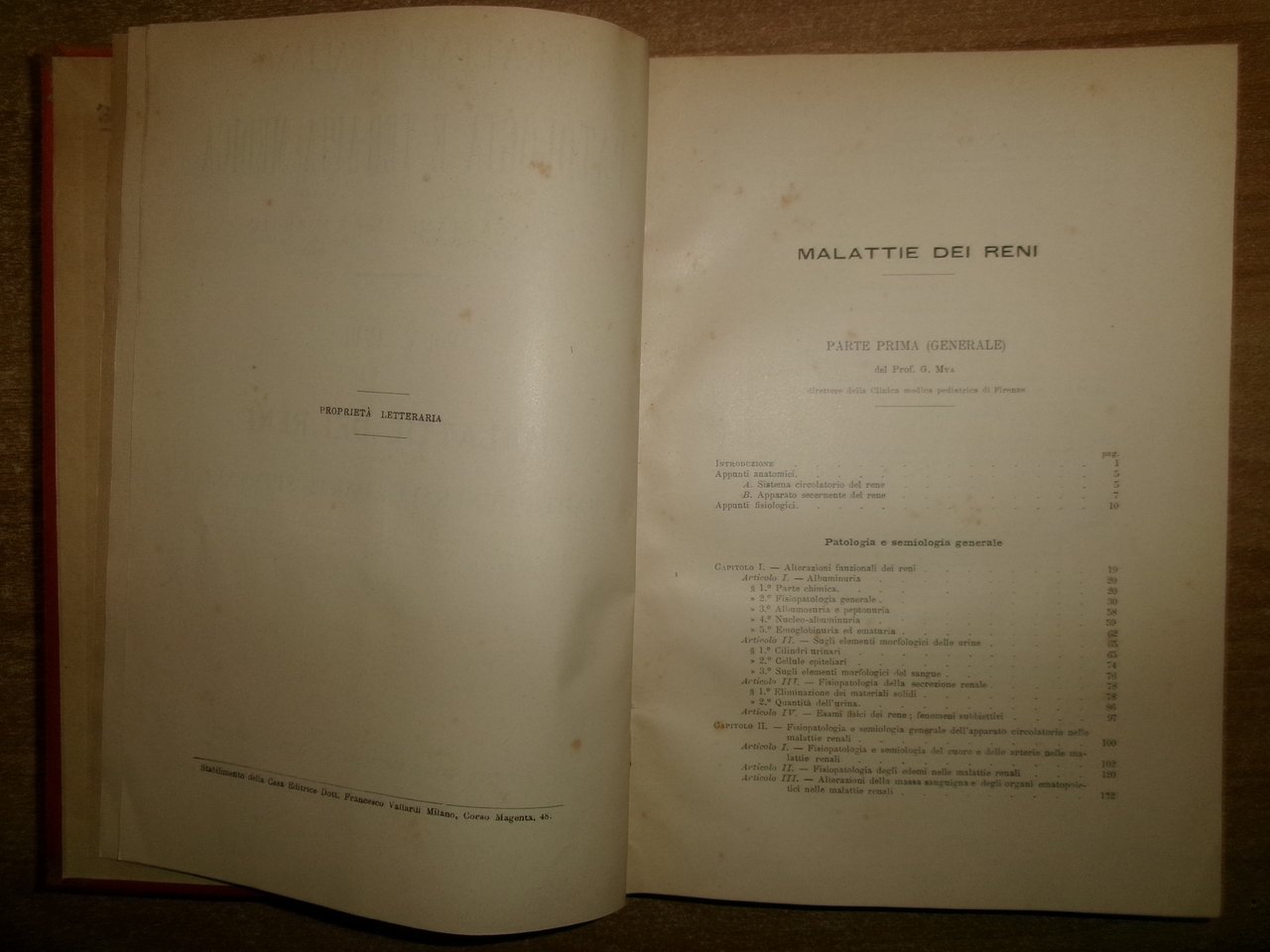 CANTANI MARAGLIANO Trattato Italiano Di Patologia E Terapia Medica. RENI. Vol. V. P. III. Milano, Francesco Vallardi, senza data (primi 900'). In-8°. tela con titolo in oro al dorso. vii, 400 pp. con alcune illustrazioni in nero n.t. Ben conservato. Uff. salon. sporta 6