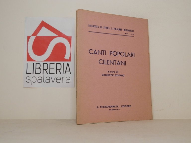 8°, 21 cm, pp. 89, brossura editoriale con sovracoperta, titoli al piatto e al dorso, rare illustrazioni in bianco e nero fuori testo, e pentagrammi musicali. Leggero alone e macchioline alla sovracoperta, piccoli segni d'uso, strappetto alla cuffia superiore, peraltro volume parzialmente intonso e molto ben conservato. A cura di Stifano, Giuseppe, con firma dello stesso alla carta che segue il frontespizio. Biblioteca di Storia e Folklore meridionale (serie 1 - n. 1).. *** TUTTI I NOSTRI LIBRI SONO VISIBILI PREVIO CONTATTO MAIL O TELEFONO NELLA NUOVA SEDE DI MILANO: LIBRERIA COSMOPOLIS, VIA JOMMELLI, 22. ***