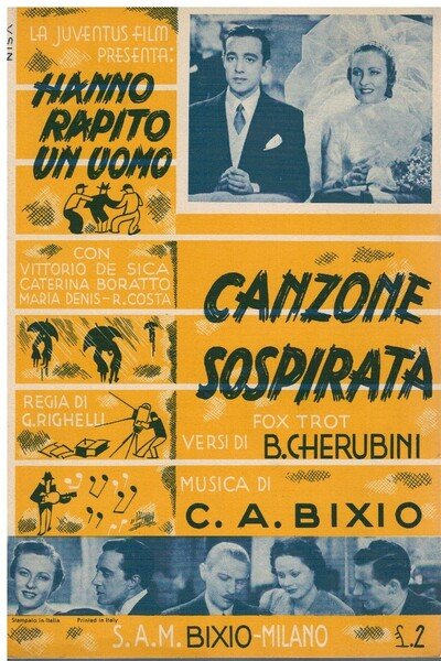 Ottime condizione. Non comune spartito Di "Canzone sospirata" tratta dal film "Hanno rapito un uomo", parole di B. Cherubini musica di C.A Bixio. Stampato in pieno Ventennio.