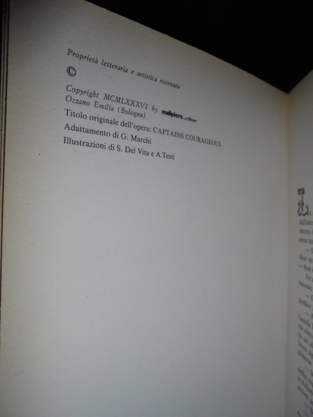 Rudyard Kipling - Bologna, Malipiero Editore, 1986. In-8°. cartonato illustrato a colori, 152 pp. con illustrazioni in bianco e nero n.t. di S. Del Vita e A. Testi. Ben conservato. Neg. mob. nero 9