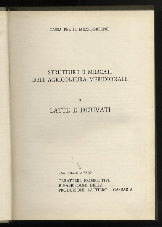 Caratteri, prospettive e fabbisogni della produzione lattiero-casearia. (Strutture e mercati dell'agricoltura meridionale. 3: latte e derivati).