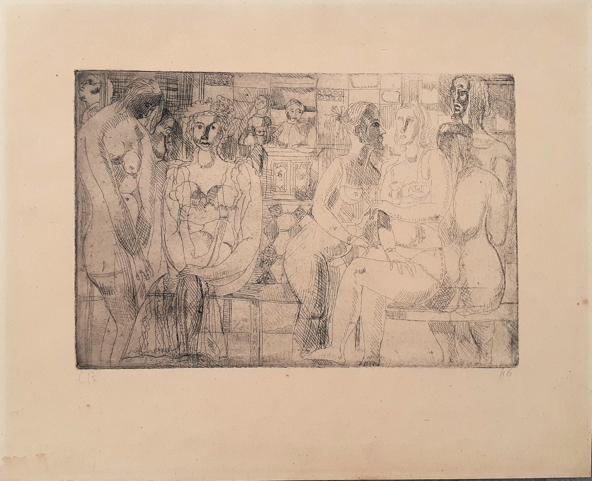 firma a matita in basso a sinistra, a destra un numero (16