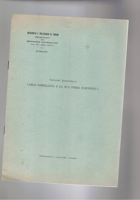 Carlo Somigliana e la sua opera scientifica. Estratto.