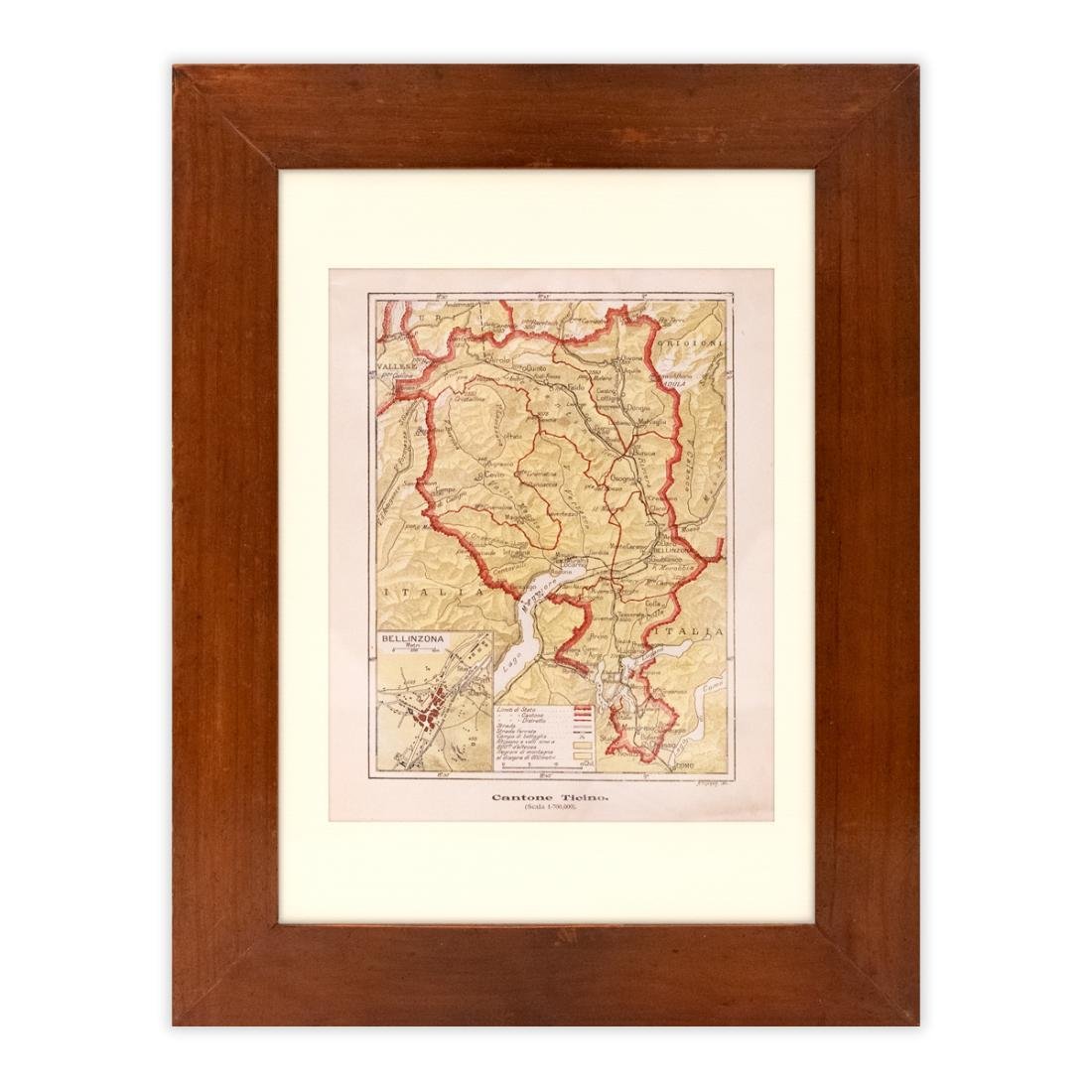 Carta originale del Ticino primi '900 Cornice d'epoca, inserti a coda di rondine.Dimensioni con cornice: 37x28 cm Dimensioni netto incisione: 21,5x17 cm Ottime condizioni generali come da immagini.