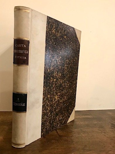8vo (cm. 25,5), XII-299(1) pp. (segue con proprio frontespizio) Atlante, 2 cc.nn., 2 tavv. a colori più volte ripiegate (’Carta litologica del bacino del fiume Tevere’ e ‘Carta idrografica.’) e 18 tavv. Legatura coeva in mz. pergamena con angoli. Fili e titoli oro su doppio tassello in pelle al ds. Ottimo stato di conservazione. Provenienza: Collezione Moretti, Roma (timbretti ex libris sulla carta di guardia libera anteriore e sul frontespizio).