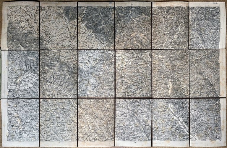 [Firenze?, Istituto Geografico Militare?, fine XIX - inizio del XX secolo], carta topografica in litografia, mm. 420x670. Intelata a stacchi e ripiegata entro copertine in piena tela: titolo in oro sulla copertina anteriore: "Firenze". Buone condizioni.