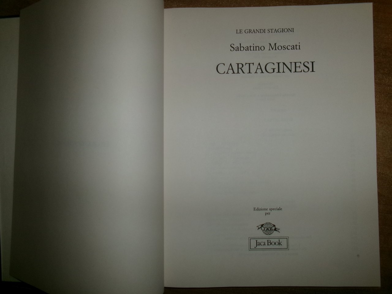 SABATINO MOSCATI. Milano, Edizione speciale per Jaca Book, 1995. I CARTAGINESI. In.4°, tela edit. beleu con sovracopertina ill. a col. 248 pp. con numerose illustrazioni a colori e in bianco e nero anche a piena pagina. Ottimo stato Uff. C - I - 3 - 2
