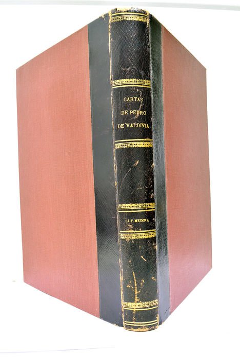 Couverture d'origine imprimée, conservée. XXXVI. 339 pages. 1 feuillet. (38x23 Cm) Demi maroquin noir, dos lisse orné un peu frotté. Coins et coiffes émoussés. Cette édition fac-similé de 1953, réalisée par José Toribio Medina, rassemble les correspondances de Pedro de Valdivia, figure centrale de la conquête du Chili. Publiée à Santiago, elle offre un aperçu précieux sur les premières interactions entre les conquistadors espagnols et les peuples autochtones, ainsi que sur les défis et ambitions de l'époque coloniale. La qualité graphique de la reproduction des lettres, associée à l'introduction de Jaime Eyzaguirre, enrichit la compréhension historique des événements relatés. Imprimé en 2000 exemplaires. Exemplaire très bien conservé.