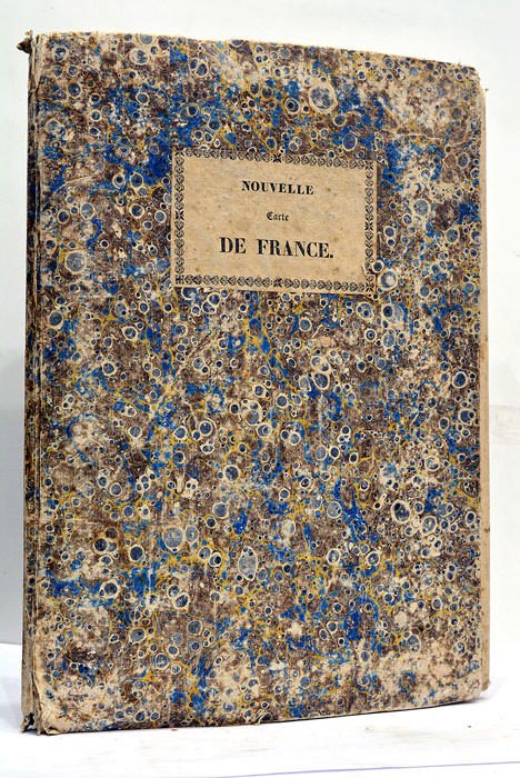 95x128 Cm. Belle et imposante carte de France coloriée, encadrée par 14 gravures de cathédrales français. Les départements nés de la révolution en 1789 étaient au nombre de 83 au départ. Le nombre de départements grimpa à 130 en 1810 durant la période Napoléonienne avec les annexions territoriales de la République et de l'Empire, en Allemagne, dans les Pays-Bas, en Italie, en Espagne. Ce nombre fut réduit à 86 après la chute de l'empereur en 1815. Trois petits trous, sinon en excellent état.