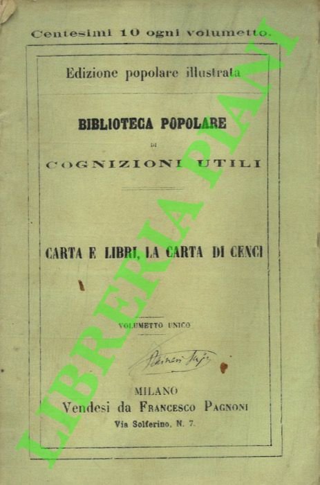 Milano, Pagnoni, (1868) 16mo spillato, pp. 32 (Biblioteca popolare di cognizioni utili)