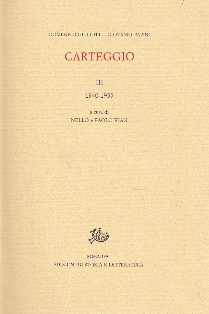 Carteggio - III - 1940-1955 | Libri antichi e moderni | D. GIULIOTTI-G.PAPINI, ,D. GIULIOTTI-G.PAPINI
