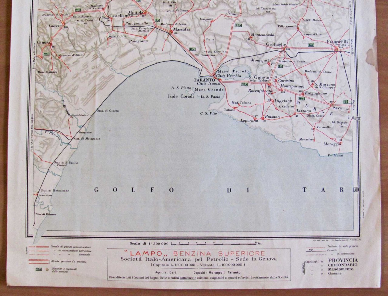 Cartina ATLANTE STRADALE Touring Club Italiano TARANTO - BARI, 1924 | Libri antichi e moderni | Touring Club Italiano