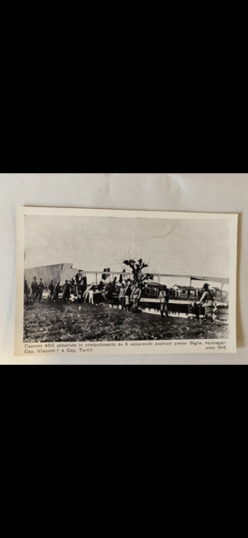 Cartolina Caproni 450 abbattuto in combattimento presso Biglia, equipaggi Cap. Visconti e Cap. Turilli Anno 1916