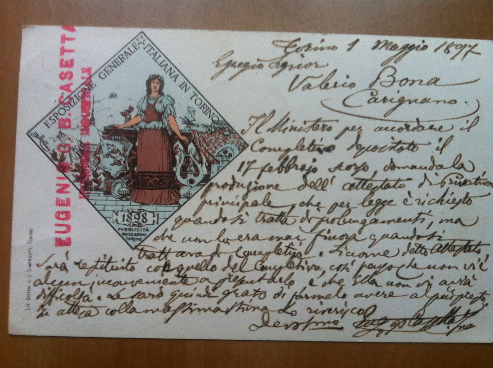 Cartolina Esposizione Gen.le Italiana Torino 1898 V. Bona Carignano 1897- E15095