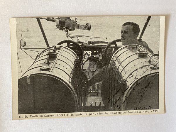 Cartolina G. B. Trotti su caproni 450 HP in partenza per un bombardamento sul fronte austriaco - 1918
