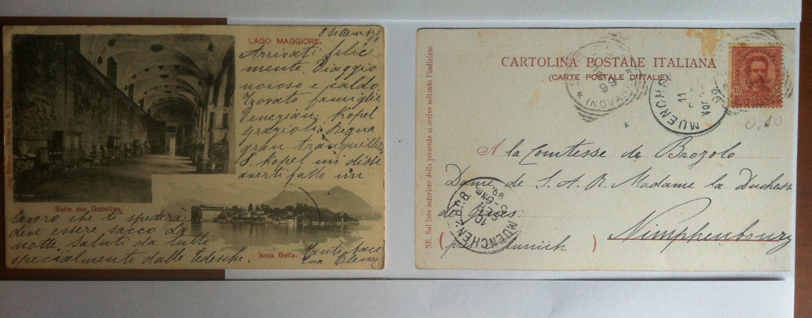 Cartolina originale 1899Lago Maggiore Salle des GobelinsDestinata alla Contessa Bruzolo viaggiata - in buono stato E12792