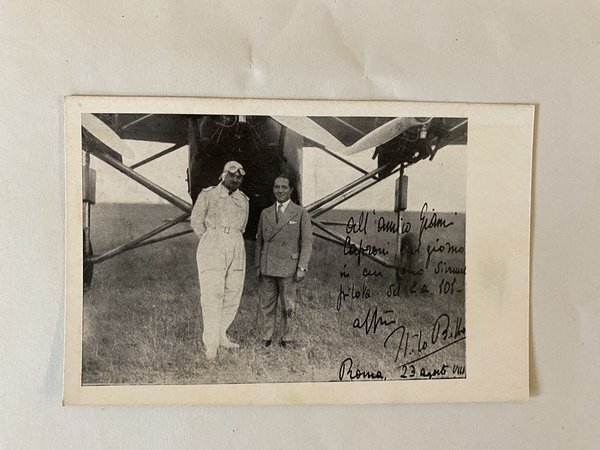 Cartolina Italo Balbo con Gianni Caproni inn ricordo del volo conCaproni 101 Roma 23 agosto 1930