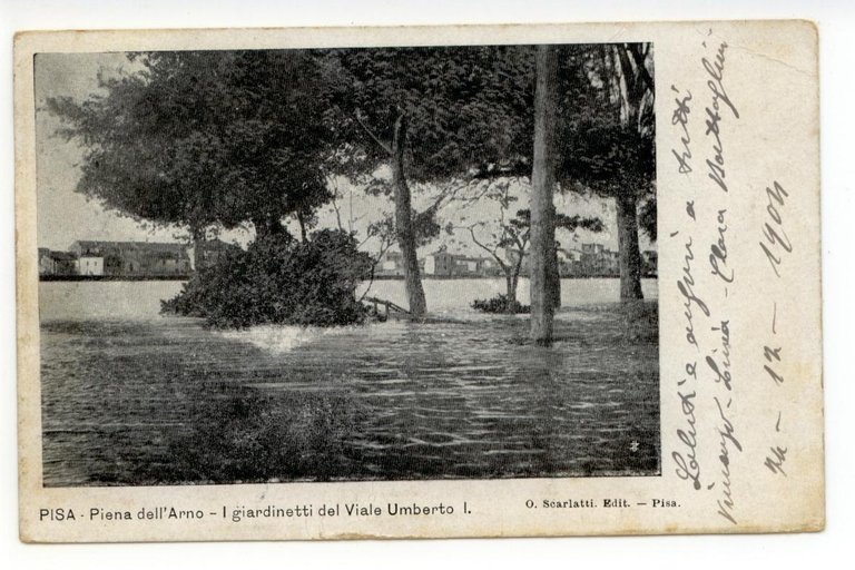 Cartolina Pisa Piena dell'Arno I Giardinetti del Viale Umberto I 1904 viaggiata
