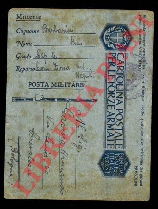 Scritta e viaggiata, 1941 (Napoli/Crevalcore)