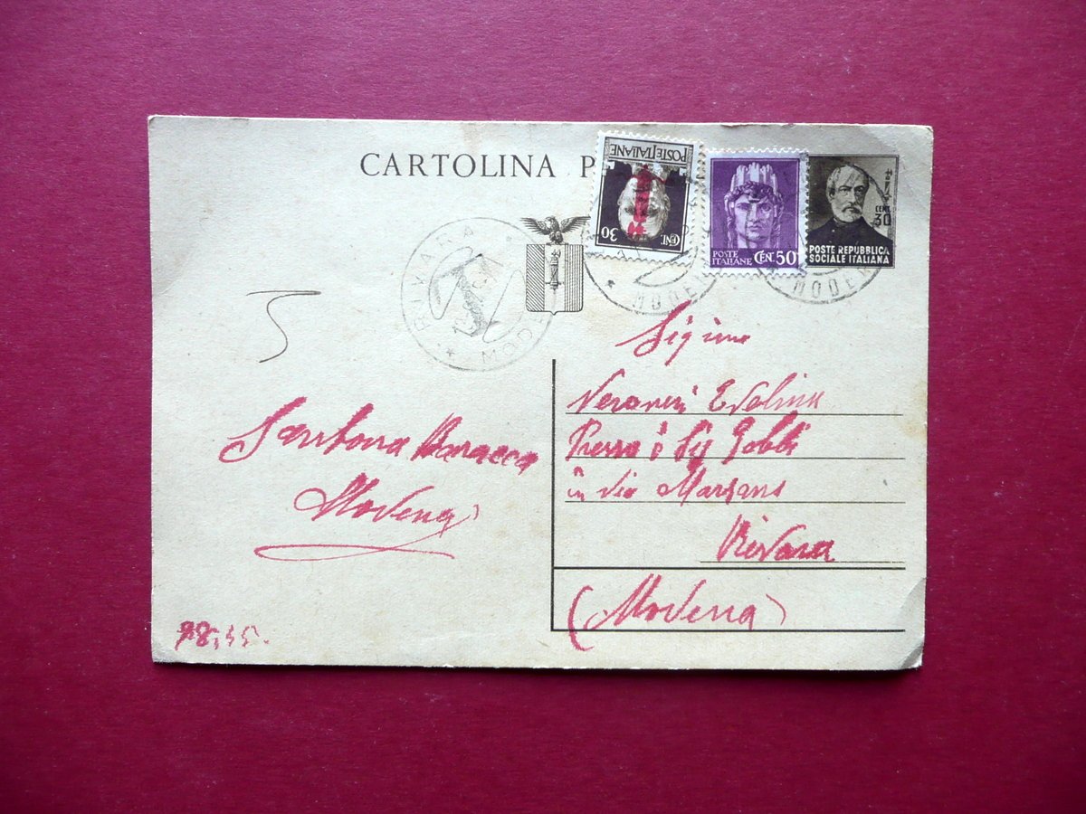Cartolina Postale RSI Modena 1945 WW2 Guerra Mondiale Viaggiata Affrancatura
