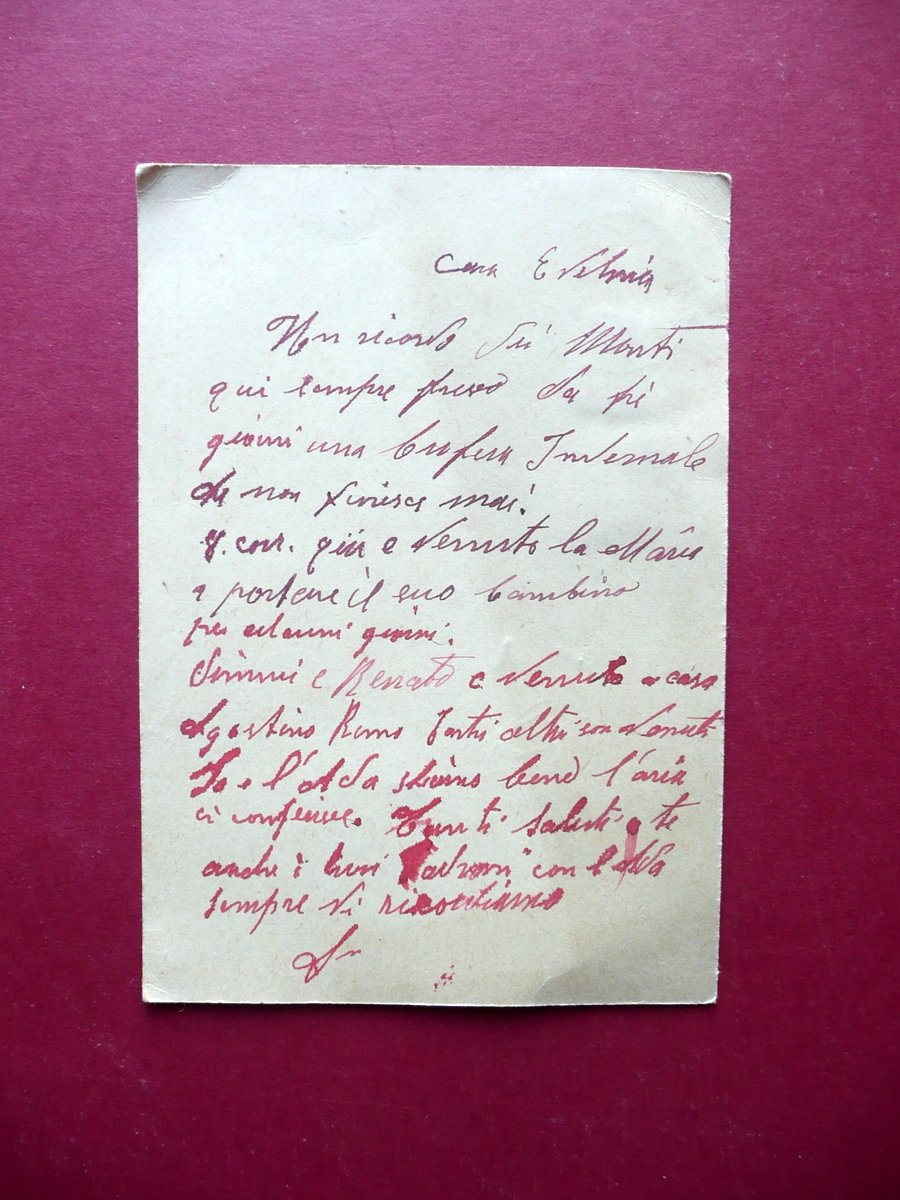 Cartolina postale, Cartolina postale datata Modena, 1945 Viaggiata e con affrancature Cartolina postale d'epoca, viaggiata. Cm 10,5x15. Condizioni di conservazione Esemplare ben conservato con tracce d'uso, alcune piccole leggere bruniture e ingialliture, angoli con minimi difetti. SC03.D15231 N
