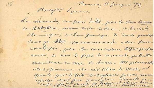 14x8 cm, 12 fitte righe inviate a Pappalardo (Catania): ". le mando . per sua cronaca artistica una mia lettera in bozza di stampa."