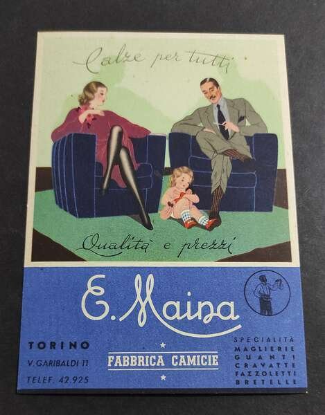 Cartolina Pubblicitaria Torino - Calze per Tutti - E. Maina Fabbrica Camicie