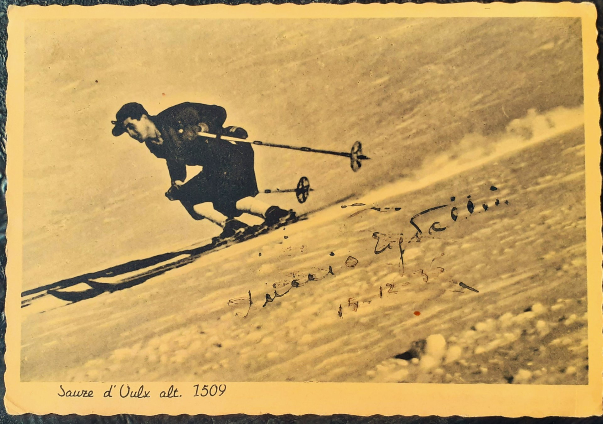 Cartolina Sauze d'Oulx maestro di sci Duccio Eydallin 1936