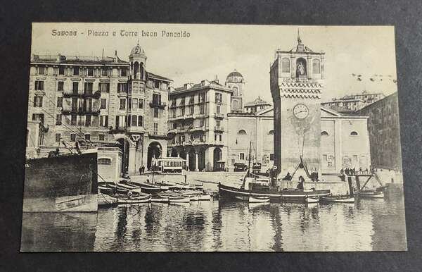 Cartolina Savona - Piazza e Torre Leon Pancaldo