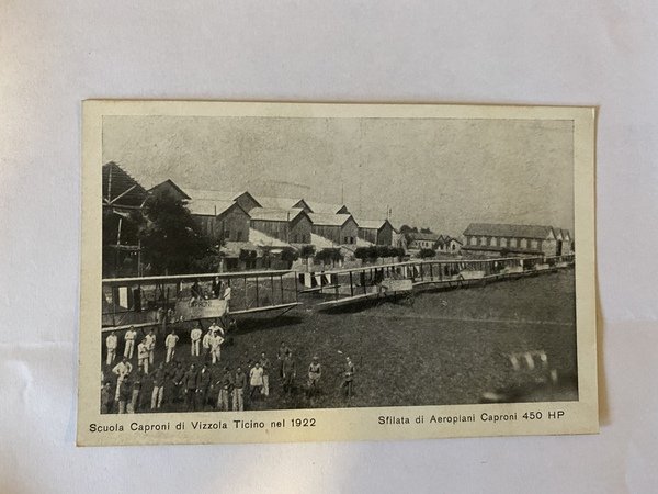 Cartolina Scuola Caproni di Vezzola Ticino nel 1922 Sfilata di aeroplani Caproni 450 HP