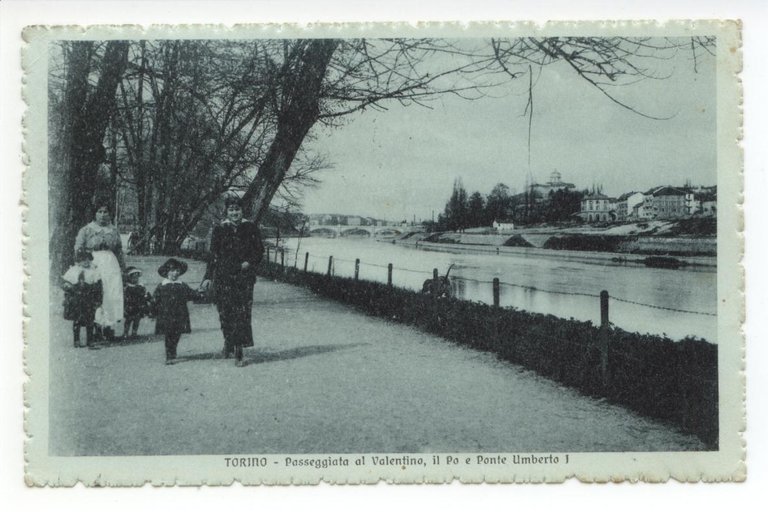 Cartolina Torino Passeggiata al Valentino il Po e Ponte Umberto I 1919 viaggiata