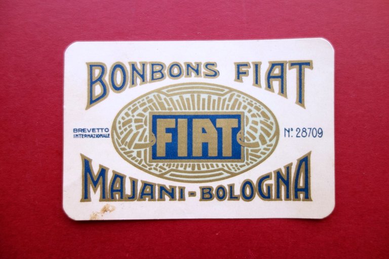 Cartoncino Pubblicitario Bonbons Fiat Majani Bologna Primo '900 Cromolitografia