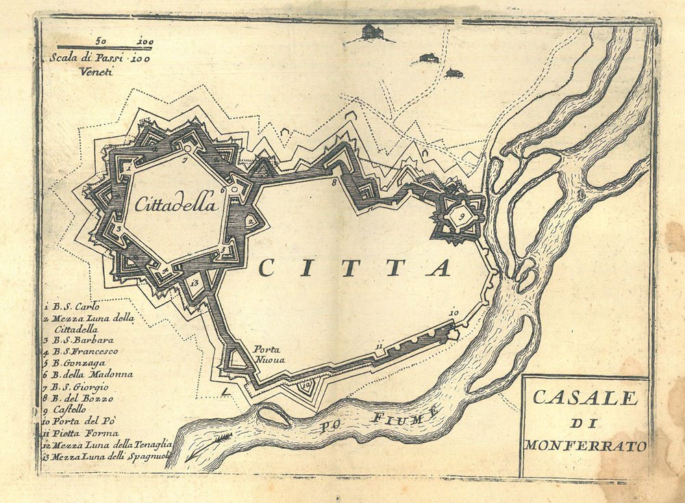 - Casale Monferrato, Piemonte, carte geografiche, urbanistica, fortificazioni, mappe, militaria, incisioni, Coronelli