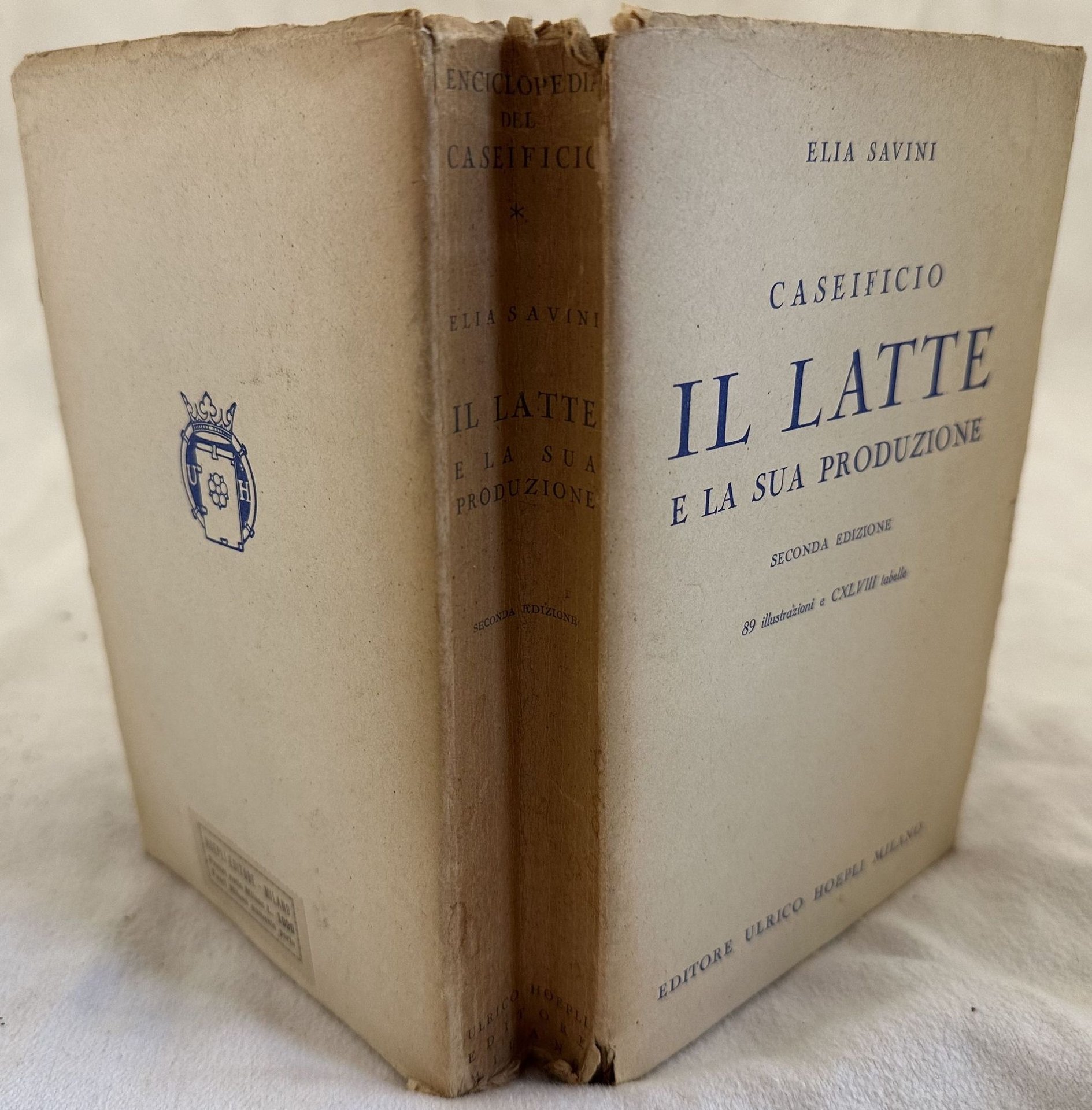 Seconda edizione del 1946 di questo manuale Hoepli sul caseificio e la produzione del formaggio scritto da Elia Savini. All'interno sono presenti numerose foto e illustrazioni nel testo. Tra gli argomenti trattati: La secrezione lattea, Anatomia della mammella, La mammella nella specie umana, Composizione chimica della mammella e istologia, Cause che influiscono sulla secrezione lattea (influenze etniche, fisiologiche, patologiche, mesologiche, dell'alimentazione), Proprietà fisico chimiche del latte, Le principali altre specie che hanno importanza lattiera ed il loro latte (Bufala, Ovini, Zebù), Produzione del latte (ricovero, personale di stalla e gli animali, mungitura, cure alla produzione, pulizia degli utensili, raccolta del latte, centri di raccolta, utilizzazione del latte), Statistica della produzione e della utilizzazione del latte, Appendice. In buone condizioni.Copertina editoriale in discrete condizioni con usure e mancanze. Legatura in buone condizioni. All'interno le pagine si presentano in buone condizioni con fioriture. In 8. cm 19,5x12,5. Pp. XXIII+(1)+718+(1). Second edition of 1946 of this Hoepli manual about cheese production written by Elia Savini. Inside there are different photoes and illustrations. Inside description of different breeds, production of cheese. In good conditions. Editorial cover in fair conditions lightly worn in the extremities and lackings. Binding in good conditions Pages in good conditions with foxing. In 8. cm 19,5x12,5. Pp. XXIII+(1)+718+(1).