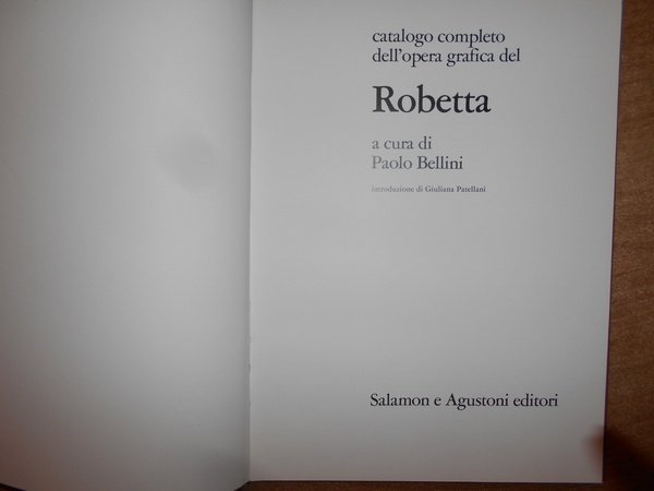 a cura di Paolo Bellini. Milano, Salamon e Augustoni Editori, 1973. Catalogo completo dell' opera grafica del ROBETTA. In-4°, tela bruna con titolo in oro al dorso. 101 pp. con numerose illustrazioni n.t. raffiguranti le opere dell' artista. Come nuovo ma senza sovracopertina. Neg. esot. mob. 72