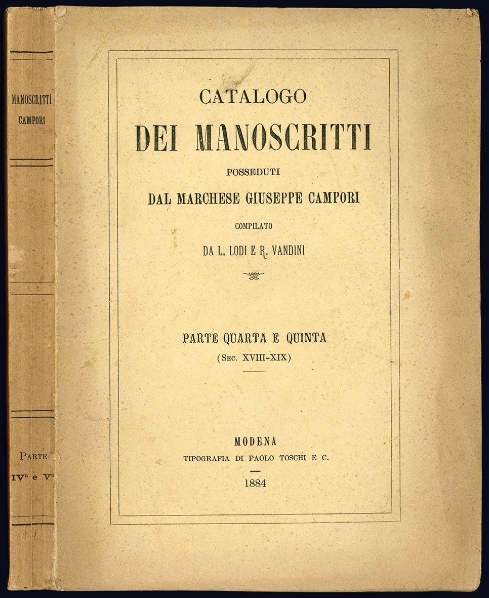 Catalogo dei manoscritti posseduti dal Marchese Giuseppe Campori compilato da L. Lodi e R. Vandini. Parte quarta e quinta (Sec. XVIII-XIX).