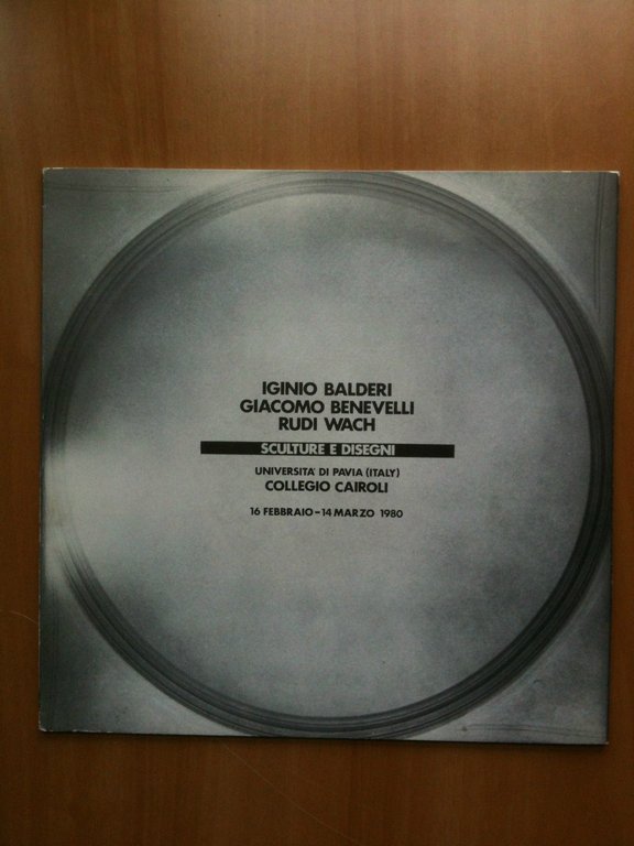 Catalogo della mostra colettiva di IGINIO BALDERI - GIACOMO BENEVELLI - RUDI WACHSculture e disegniUniversità di Pavia Collegio cairoli16 febbraio - 14 marzo 198036 pagine e 32 fotografie di opere b/n fomato 22,5x22,5 cmin ottime condizioni (164g)E3533