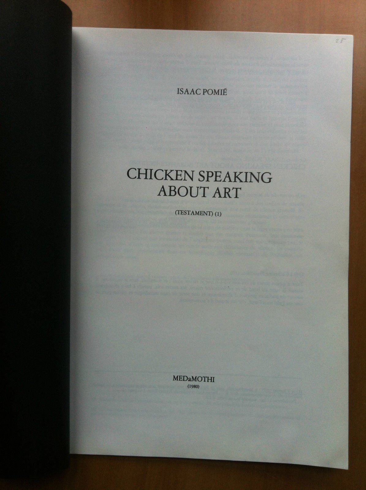 ISAAC POMIÉCatalogo delle opereCHICKEN SPEAKING ABOUT ART(TESTAMENT) (1)MEDaMOTHI 198020 pagine b/n e - formato 21x29,5 cm In ottimo stato (70 g)E19451