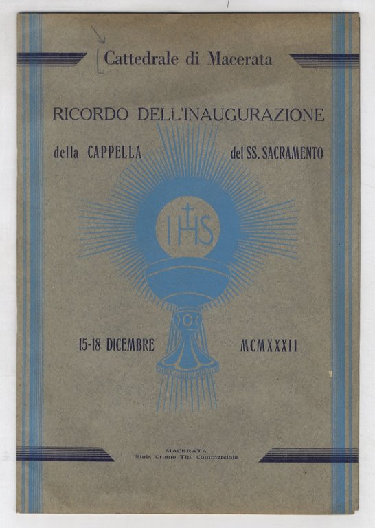 CATTEDRALE di Macerata. Ricordo dell'inaugurazione della cappella del SS. Sacramento. 15-18 dicembre MCMXXXII.